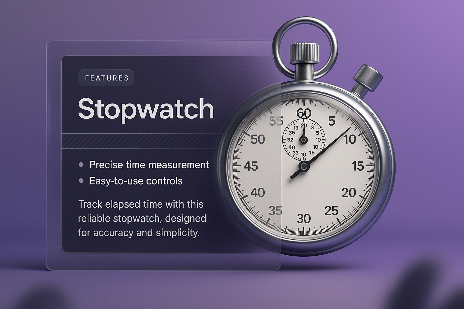 /Collection: /by davooda/Type: PNG/A sleek 3D illustration of a stopwatch set against a smooth gradient background. It features a transparent overlay highlighting key features like precise time measurement and user-friendly controls.
