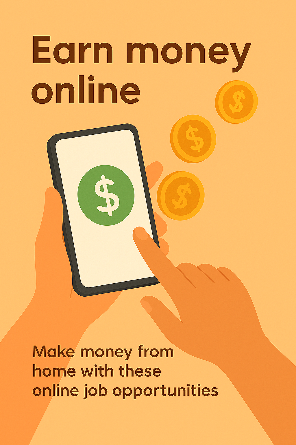A digital illustration showcasing the concept of earning money online, featuring hands interacting with a smartphone and coins, ideal for online job promotion content.