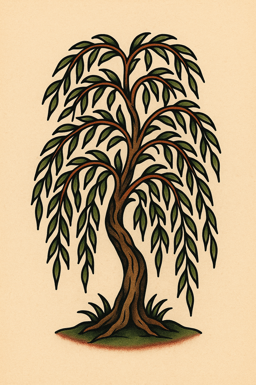 /Collection: /by davooda/Type: PNG/This image showcases a beautifully illustrated weeping willow tree. The design features intricate details and earthy colors, suitable for nature-themed projects.