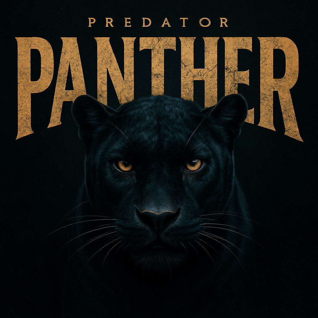 /Collection: /by davooda/Type: PNG/A dramatic graphic featuring a close-up of a panther's face with bold, stylized text. The dark color palette and fierce expression convey a sense of strength and mystery, suitable for branding or promotional materials.