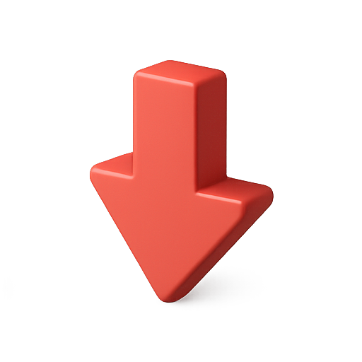 Stylized 3D red downward arrow icon, perfect for indicating direction or emphasis in digital designs. Ideal for user interfaces and graphic applications.
