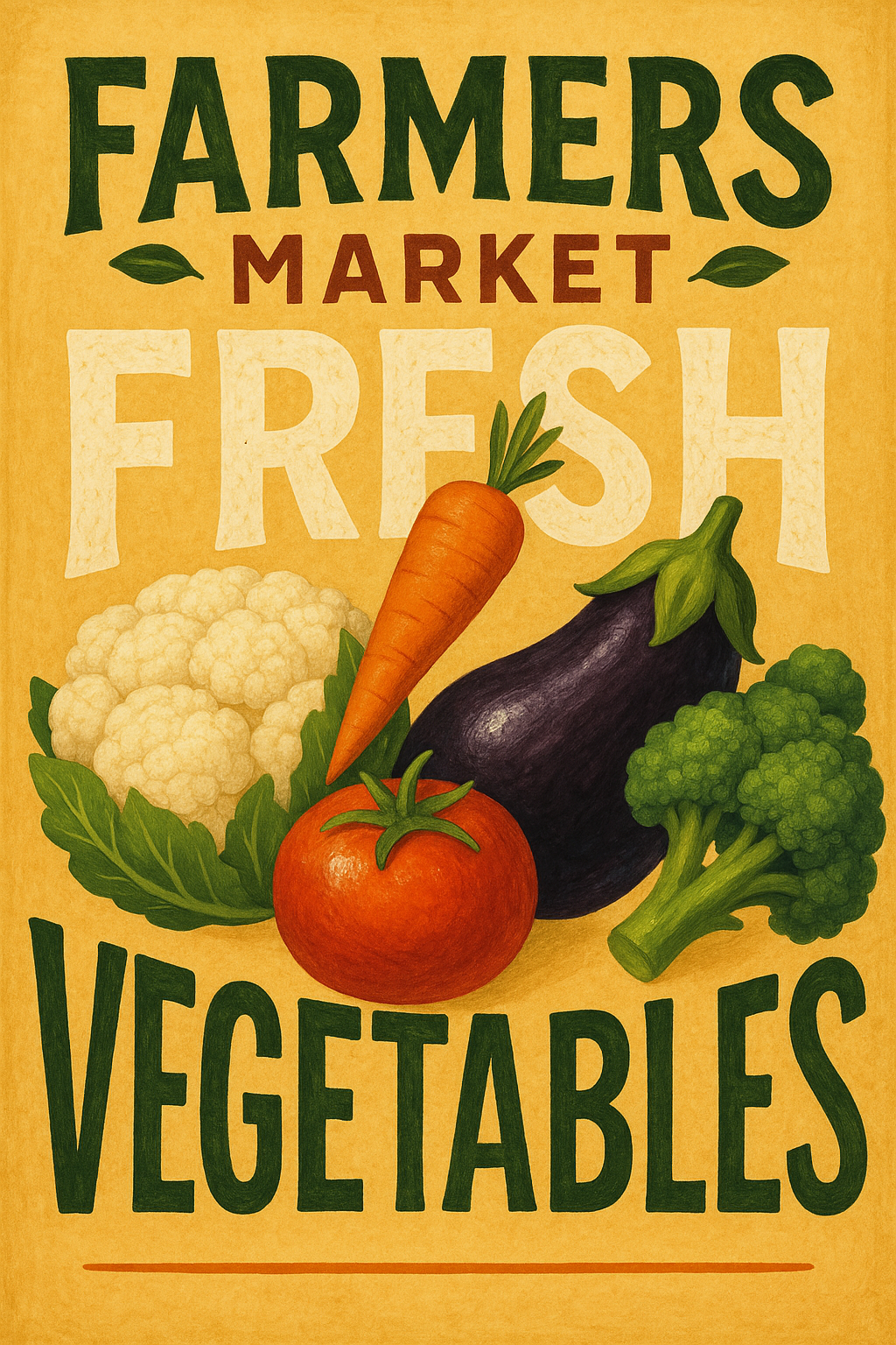 Vibrant poster design showcasing fresh vegetables with an emphasis on a farmers market theme, ideal for promoting local produce and healthy eating.