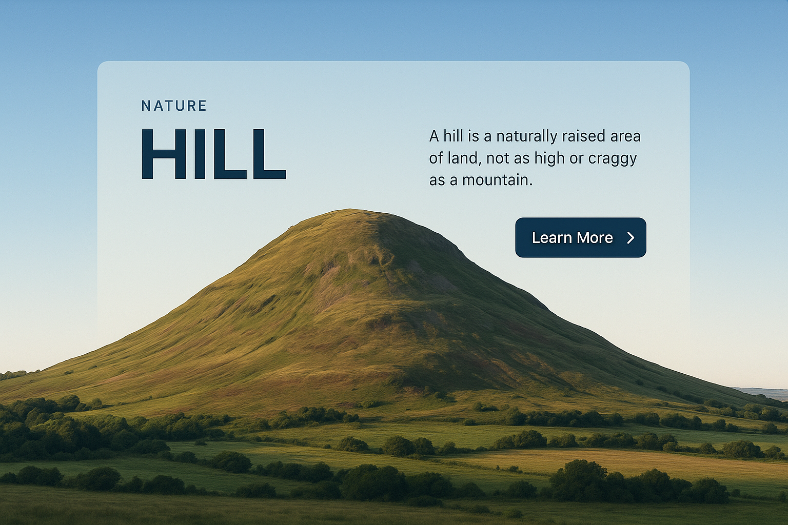 A modern web page layout showcasing a hill with a gradient background. It features a bold title, a brief description, and a clear action button.