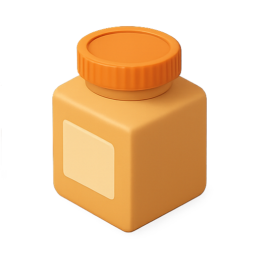 A stylized 3D rendering of a square jar featuring a bright orange lid. The design is clean and modern, suitable for packaging concepts or product mockups.