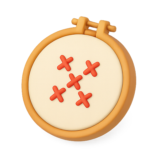 A vibrant and playful illustration of an embroidery hoop featuring red stitches. This graphic is ideal for crafting-related content, DIY projects, or creative workshops.