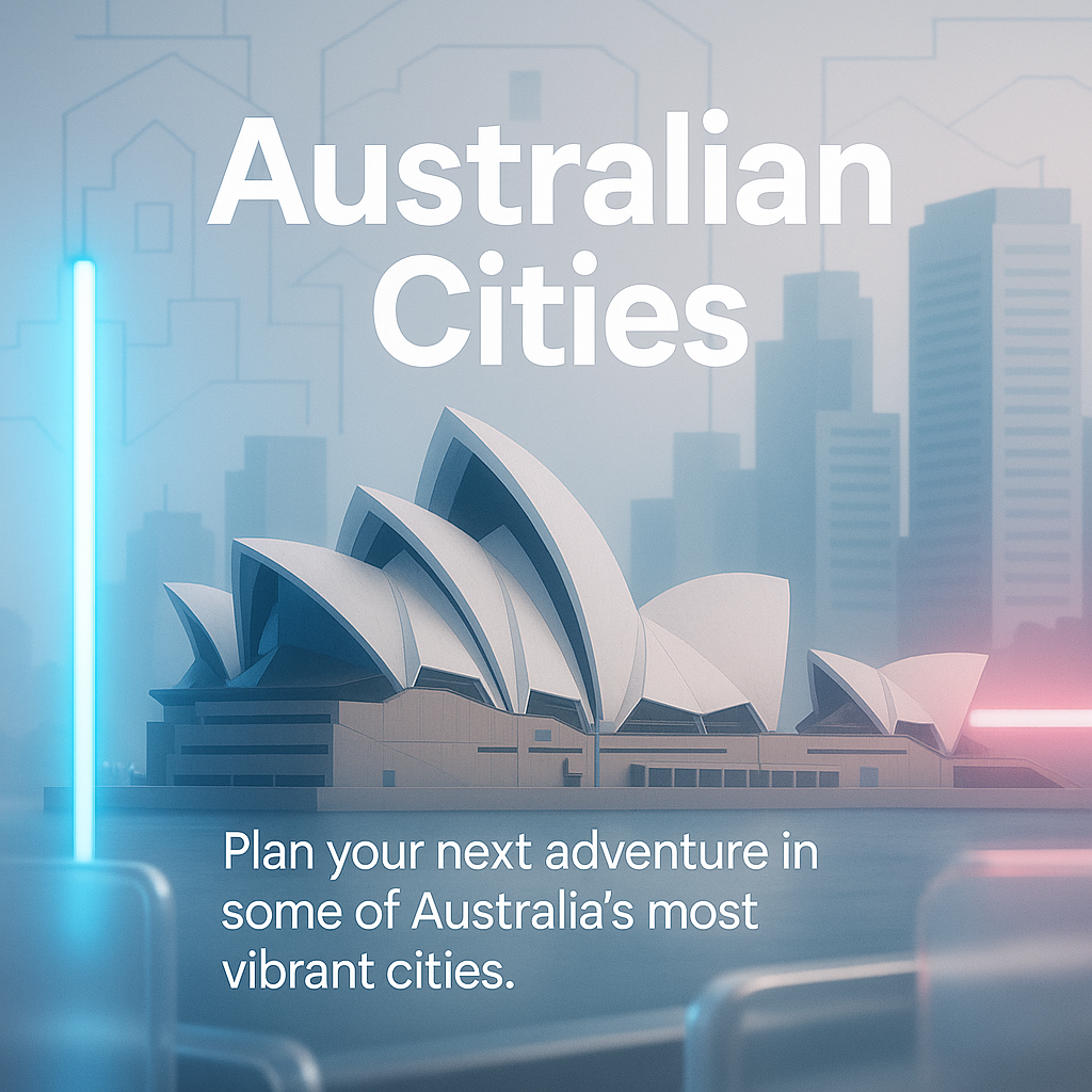 Stylish promotional image featuring iconic Australian architecture with a modern aesthetic, perfect for travel marketing and adventure planning.