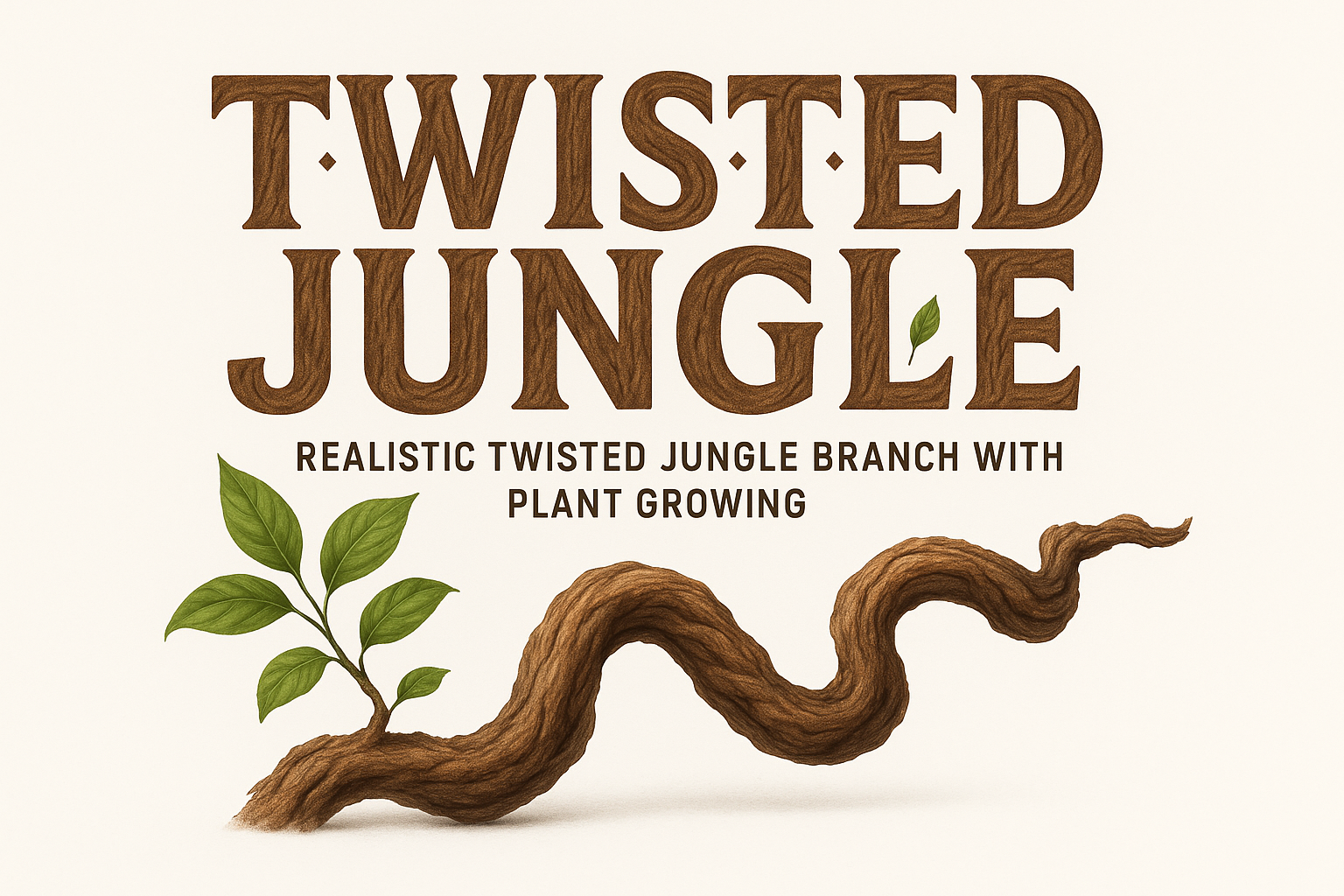 /Collection: /by davooda/Type: PNG/A creative illustration featuring a realistic twisted jungle branch with a plant growing from it. Ideal for nature-themed projects or environmental branding.