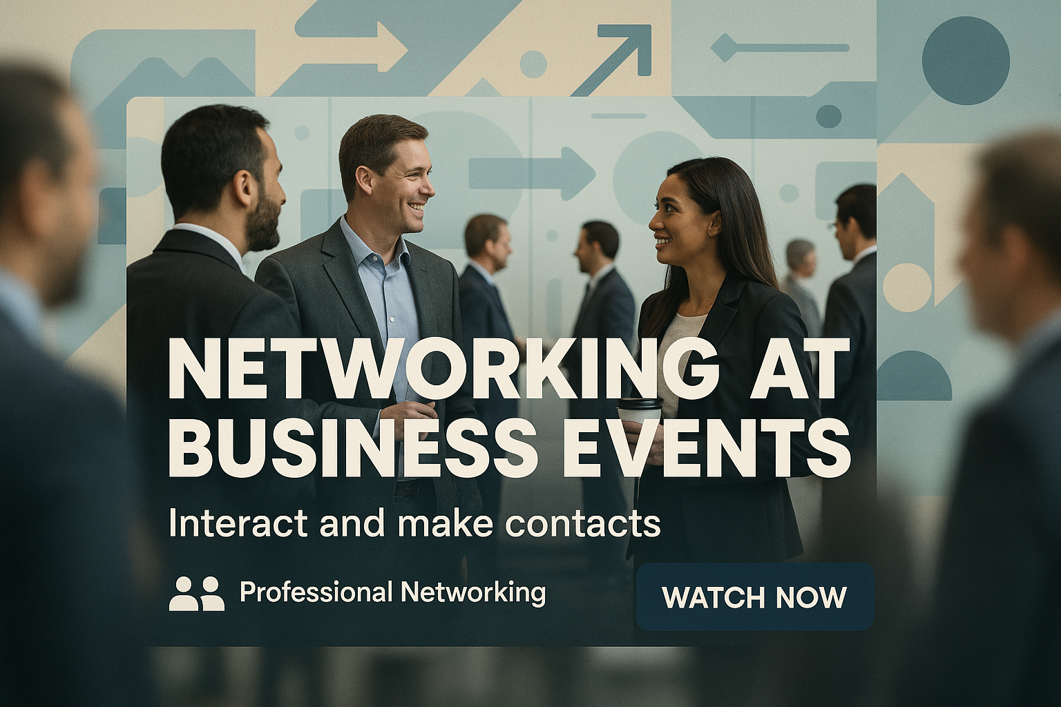 /Collection: /by davooda/Type: PNG/Engaging promotional banner for networking at business events, featuring professionals interacting in a modern setting. Ideal for marketing networking seminars or workshops.