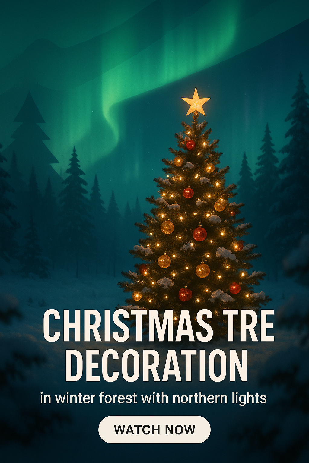 /Collection: /by davooda/Type: PNG/A visually stunning depiction of a decorated Christmas tree in a winter forest, illuminated by northern lights. Ideal for holiday-themed content and seasonal promotions.