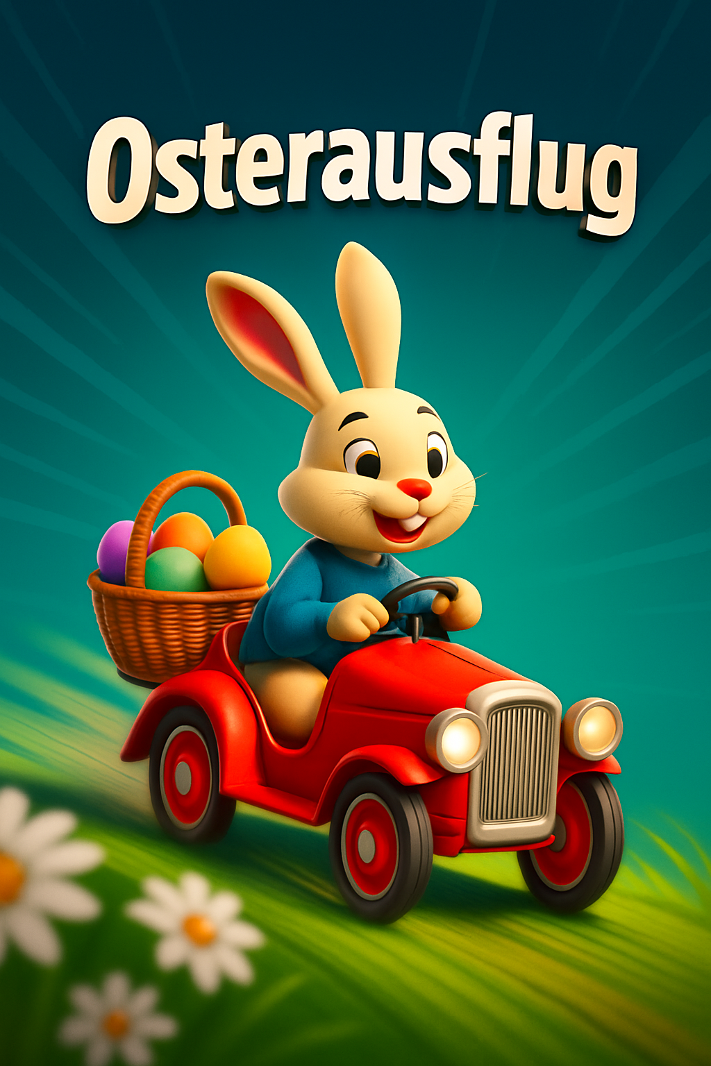 Dynamic Osterausflug: Easter Bunny in a Red Go-Kart