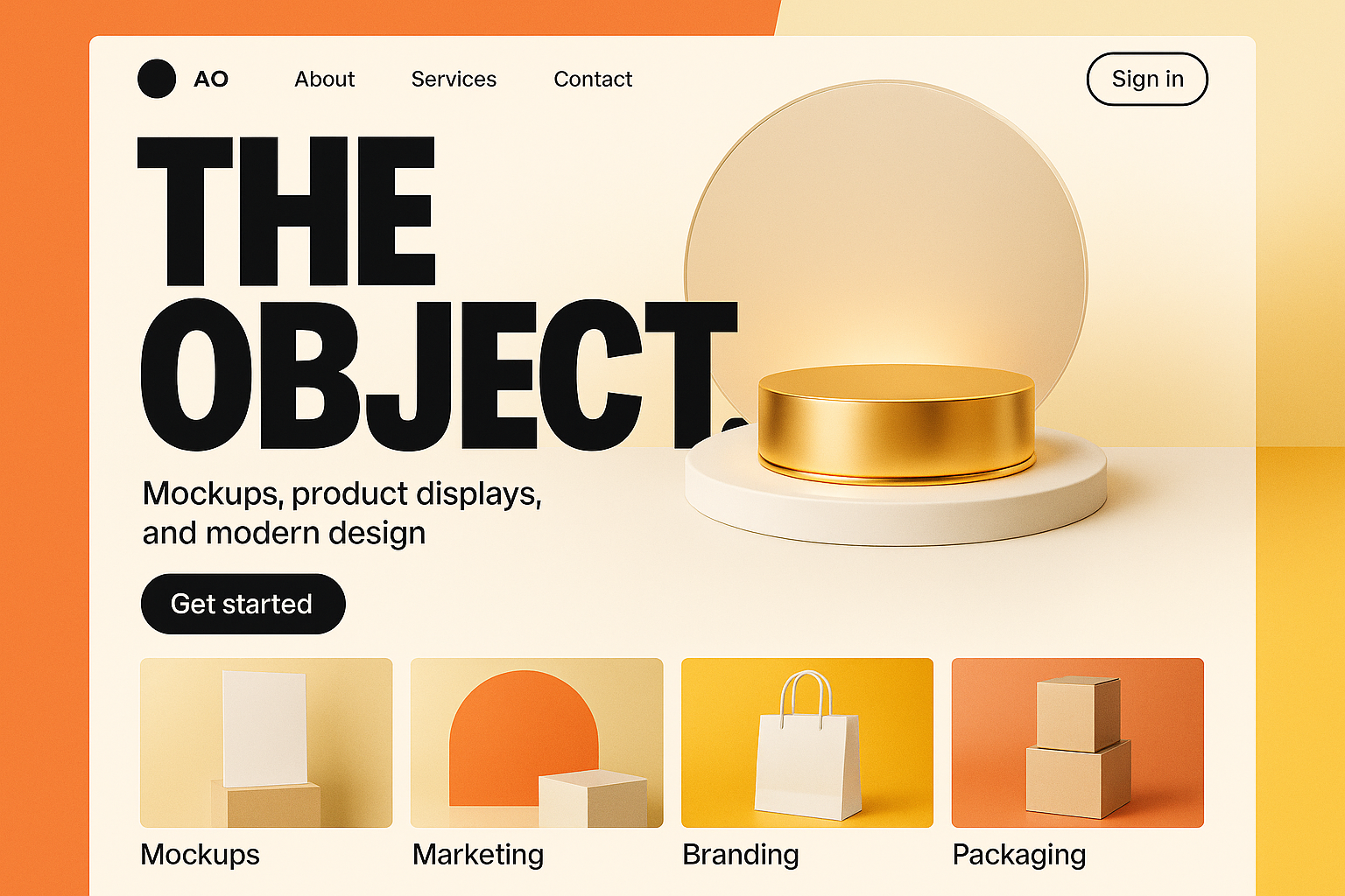 Modern Landing Page Design with Bold Typography and 3D Elements