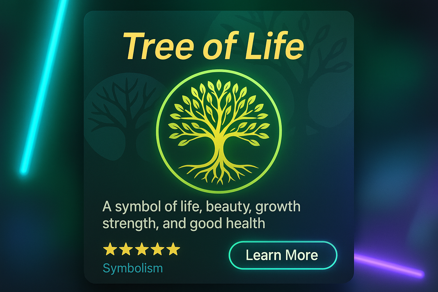 A visually striking digital graphic featuring the Tree of Life, symbolizing beauty and growth. Ideal for wellness or nature-related content.