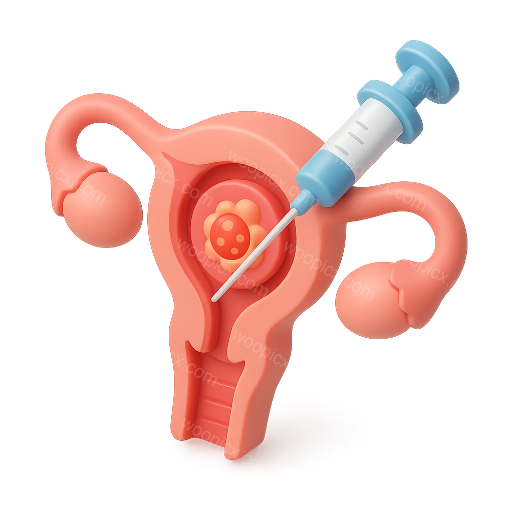 /Premium/Collection: /by davooda/Type: PNG/This image features a colorful 3D icon representing an embryo implant. It showcases a stylized uterus with a syringe, emphasizing the process of embryo transfer in a modern, volumetric design.