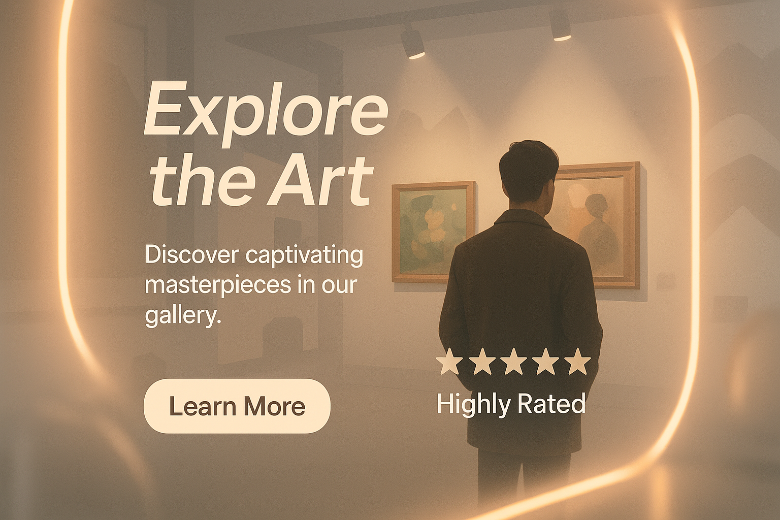 Promotional image for an art gallery showcasing captivating masterpieces with a modern design, ideal for attracting visitors and art enthusiasts.