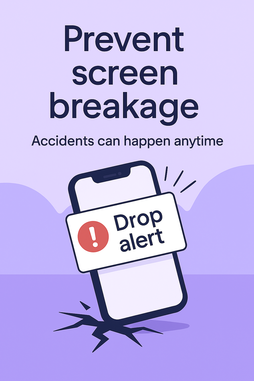 /Collection: /by davooda/Type: PNG/Informative graphic highlighting the importance of preventing screen breakage, featuring a smartphone illustration and alert message. Ideal for tech safety campaigns.