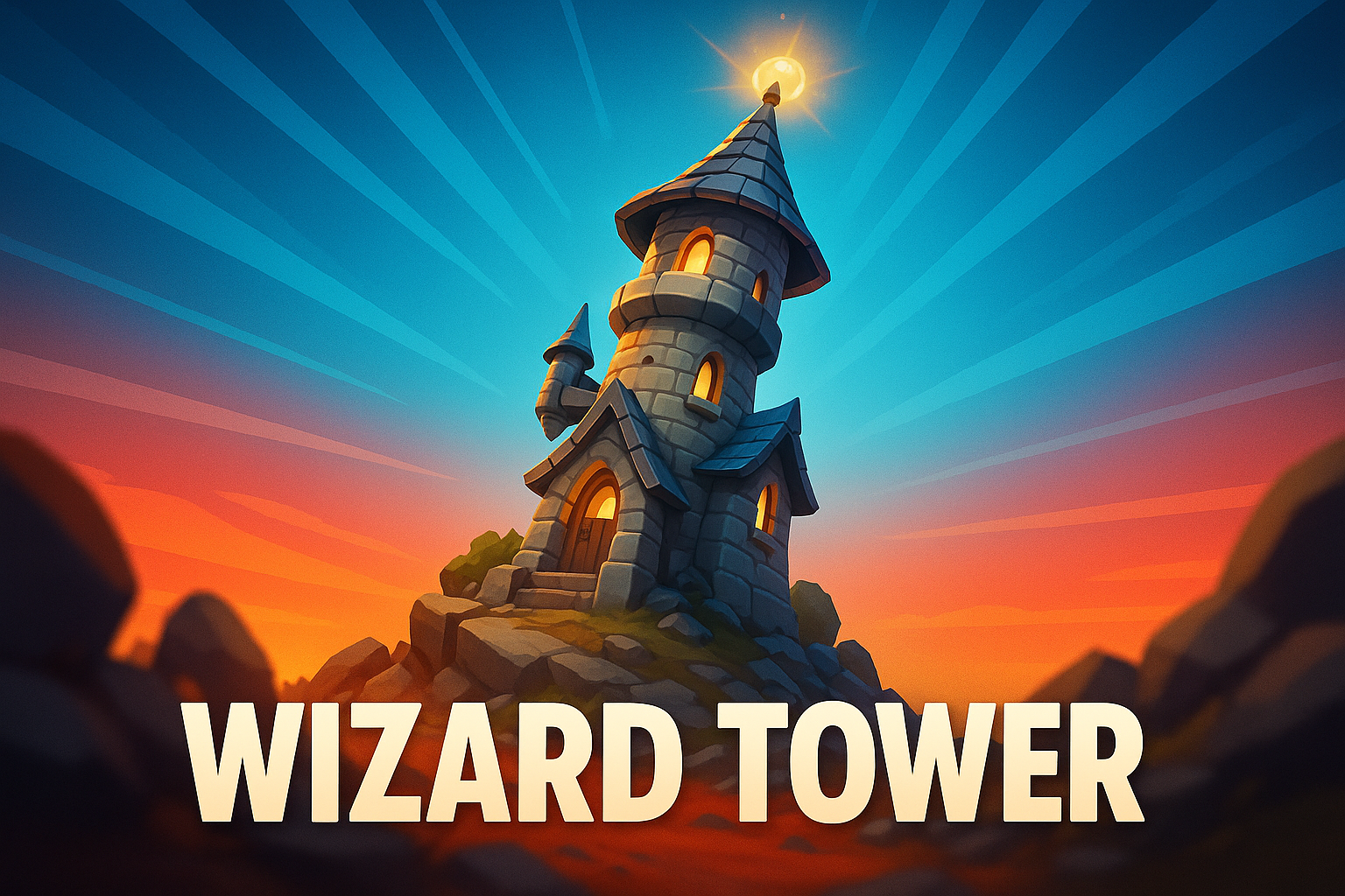 Dynamic Wizard Tower Illustration with Tricolor Effect