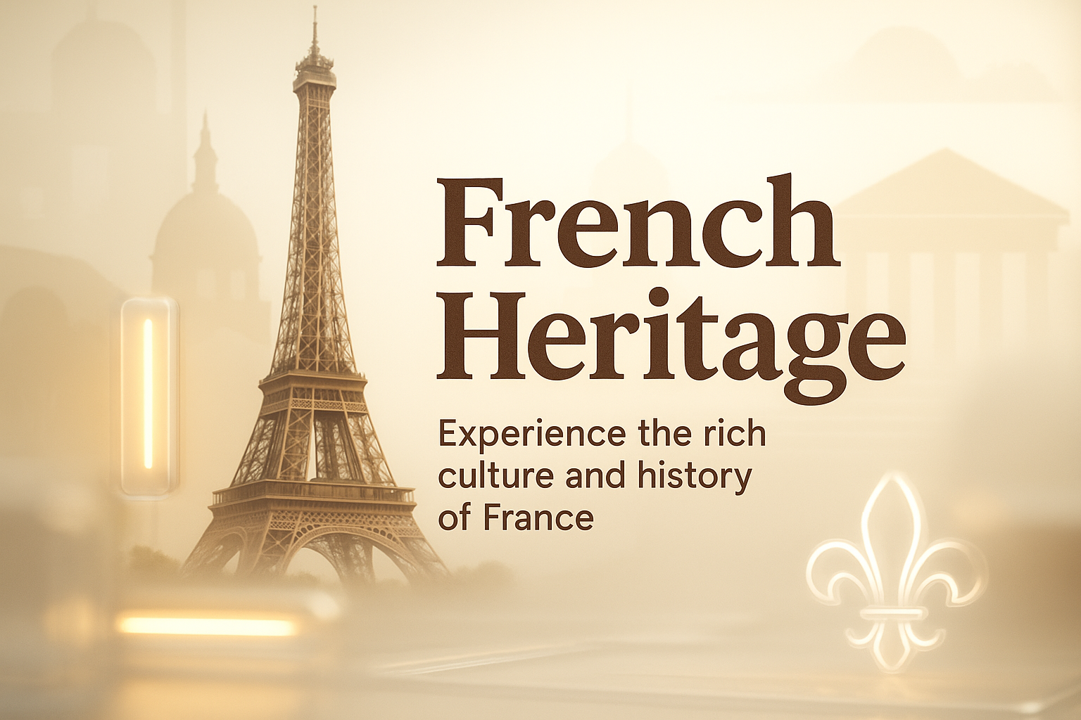 Sophisticated promotional image highlighting French heritage with iconic landmarks and soft color tones, ideal for tourism marketing or cultural events.