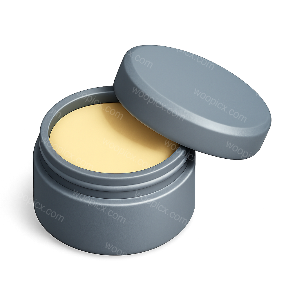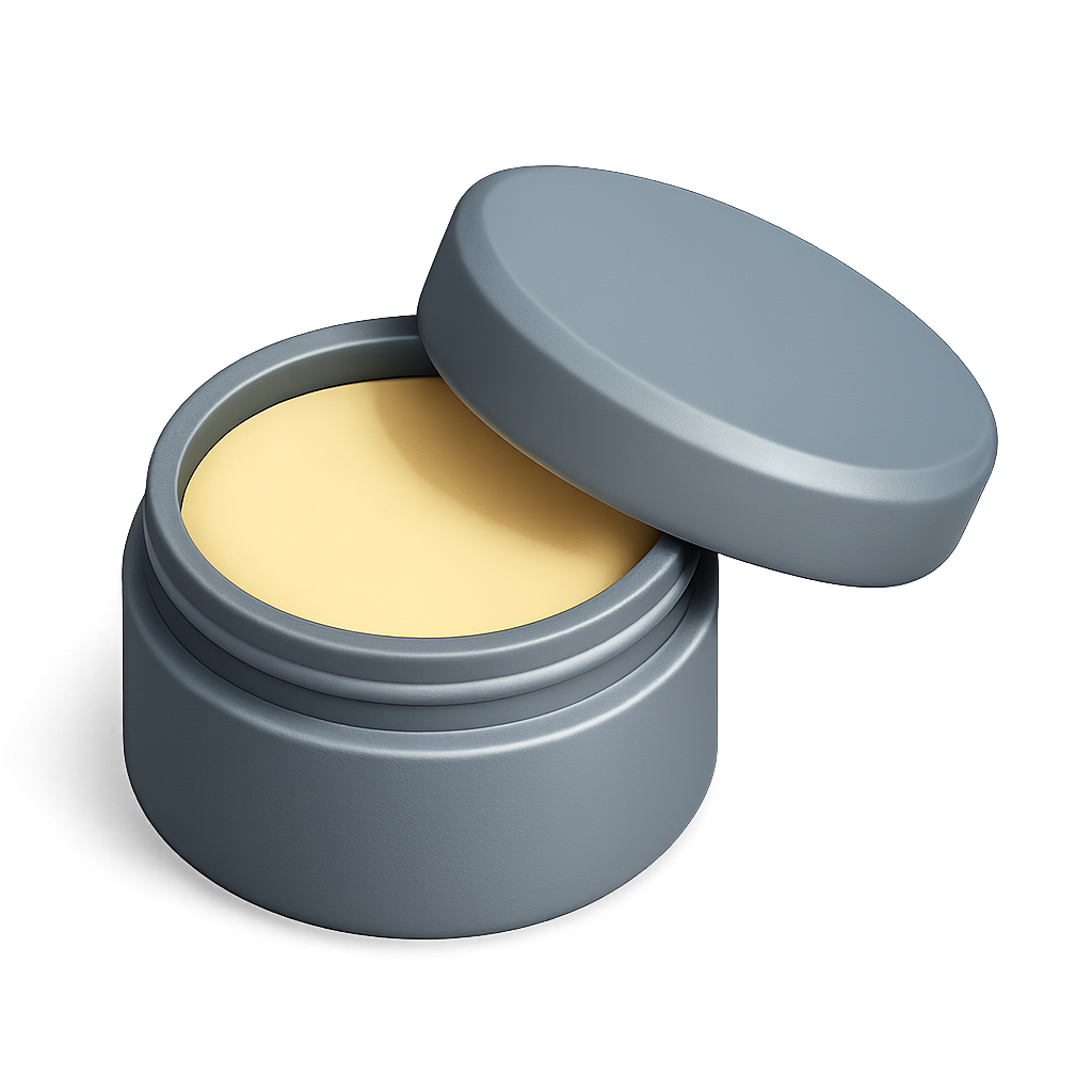 A 3D icon of a balm container featuring a gray lid and yellow balm inside, presented in a three-quarter view with a transparent background.