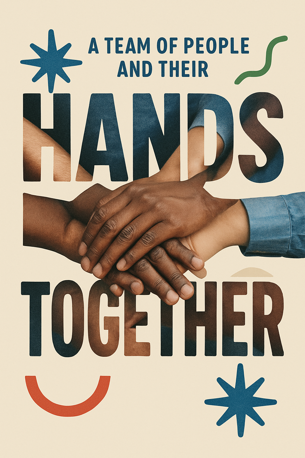 /Collection: /by davooda/Type: PNG/A visually engaging graphic showcasing diverse hands coming together, symbolizing teamwork and unity. The design features playful typography and abstract elements, ideal for team-building initiatives or community events.