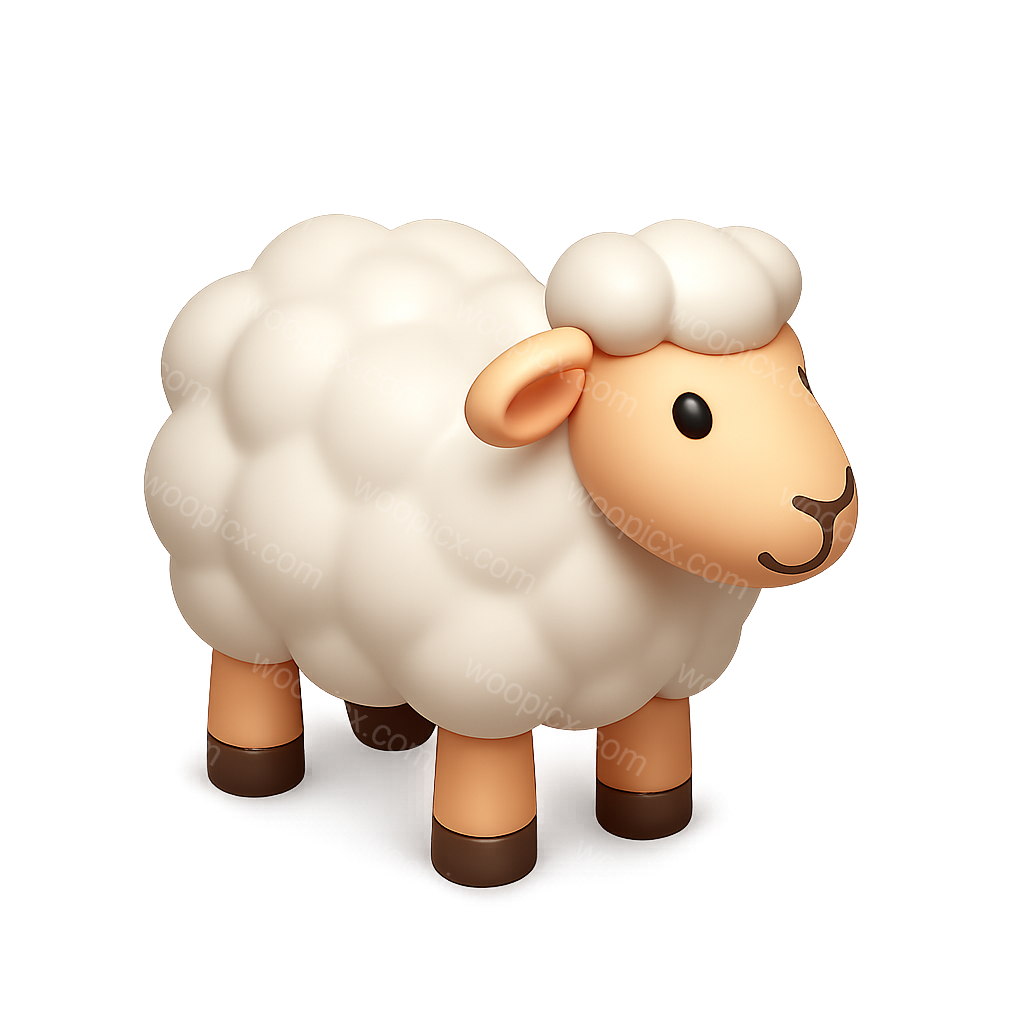 Stylized 3D Sheep Icon with Isometric View