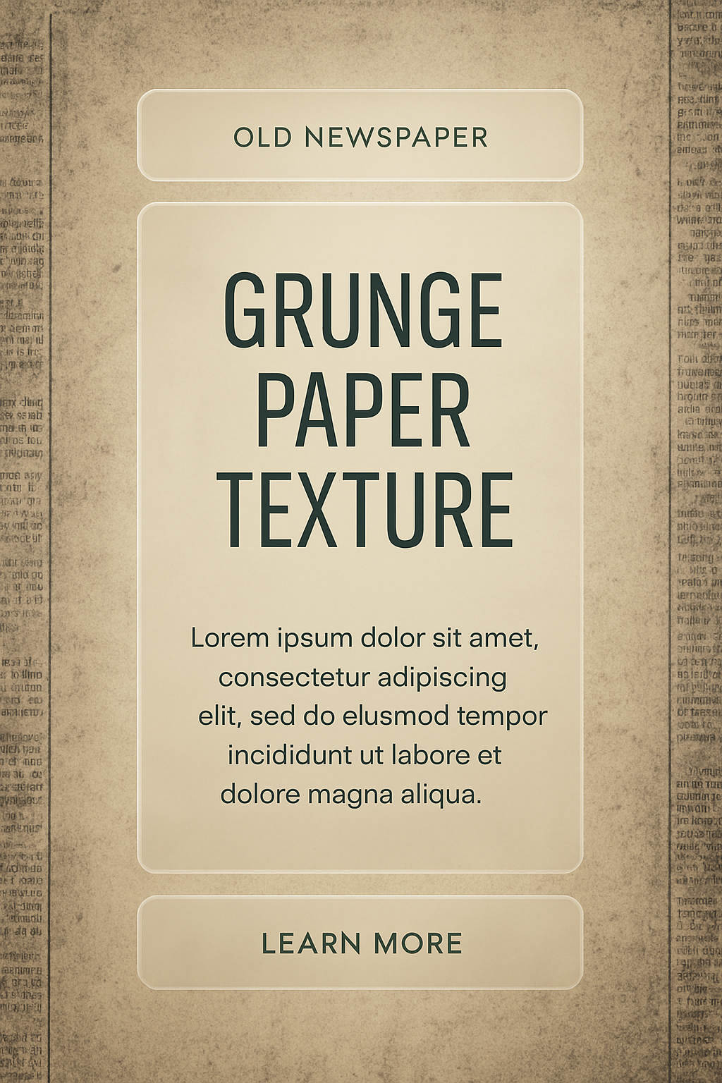 This image features an old newspaper background with a blank grunge paper texture. The design includes layered glass panels with a modern, clean aesthetic, perfect for editorial use.