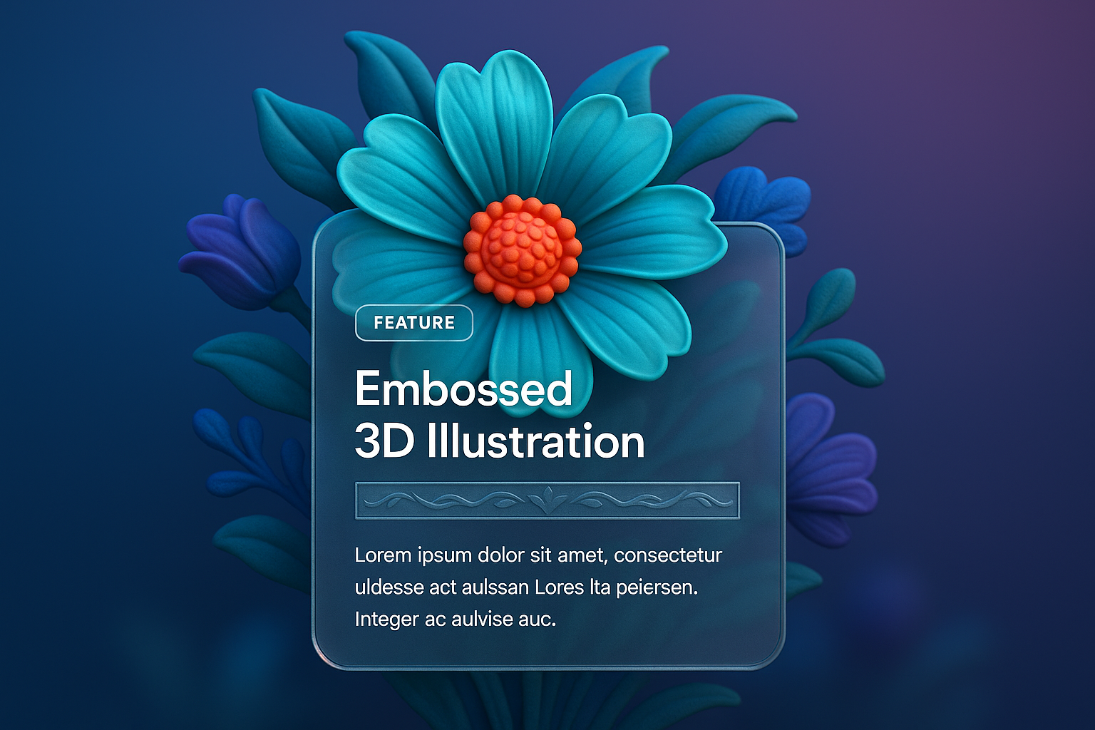 An intricate 3D illustration featuring a vivid flower motif with embossed details. The design showcases a gradient background and layered elements for depth, suitable for textile printing.