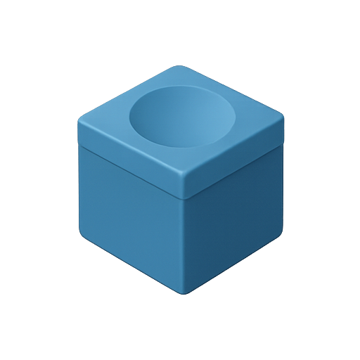 A minimalist 3D rendering of a blue cube featuring a circular indentation on the top. Ideal for product design showcases or modern branding materials.