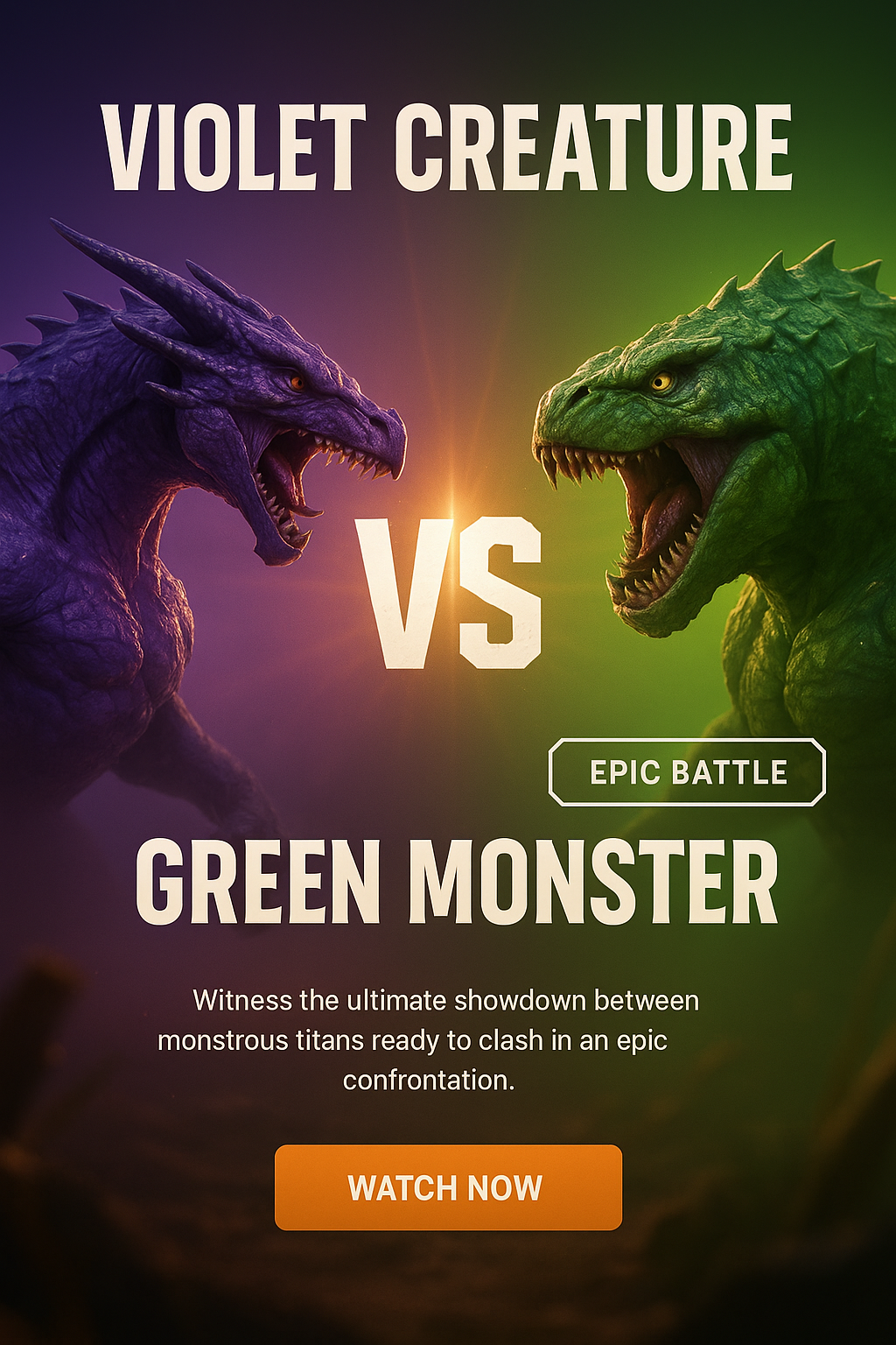 /Collection: /by davooda/Type: PNG/This graphic represents an epic battle theme featuring two monstrous titans. It is designed as a promotional banner, suitable for social media or event announcements.