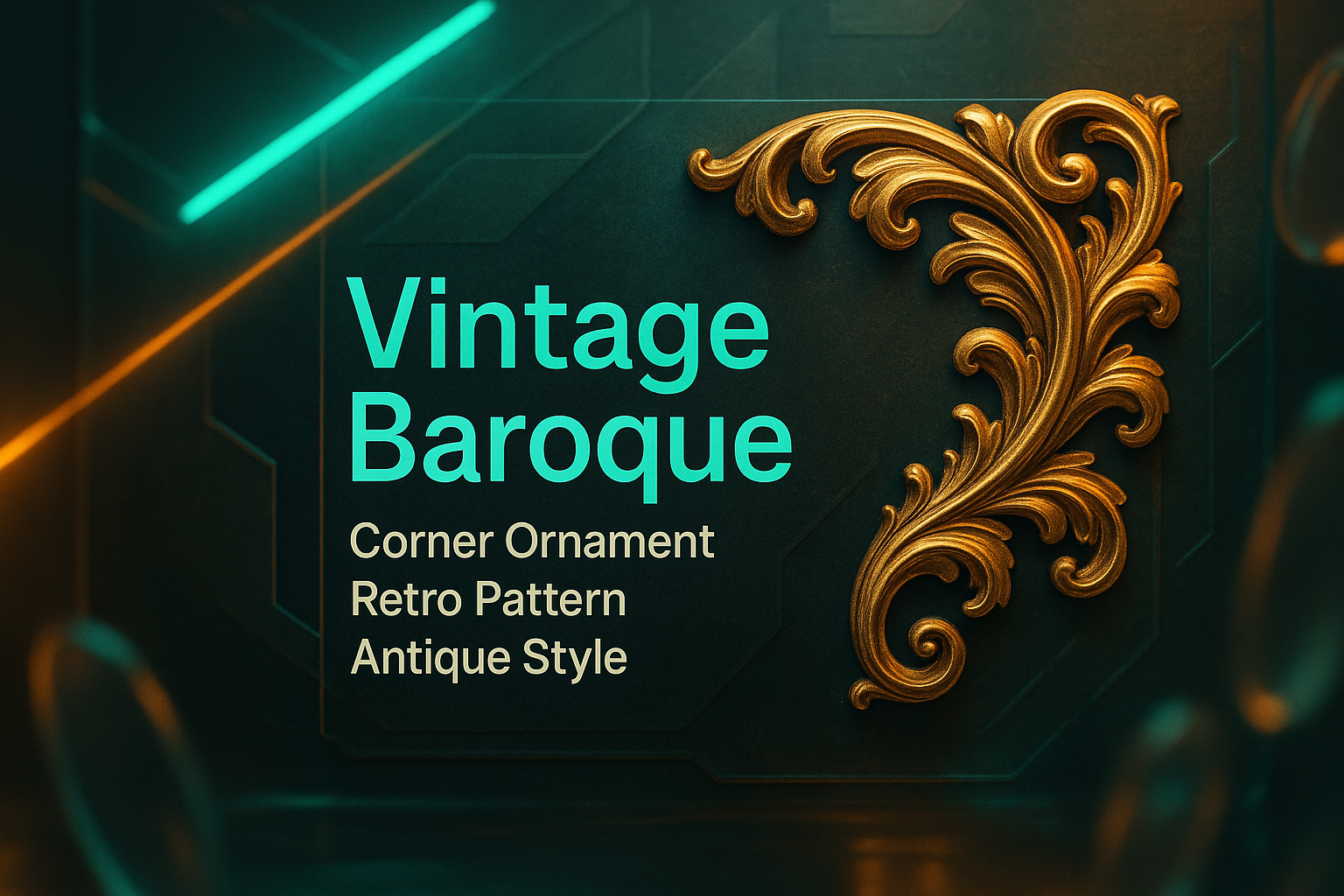 Stylish graphic featuring a vintage Baroque corner ornament with a retro pattern and antique style, ideal for artistic branding or decor projects.