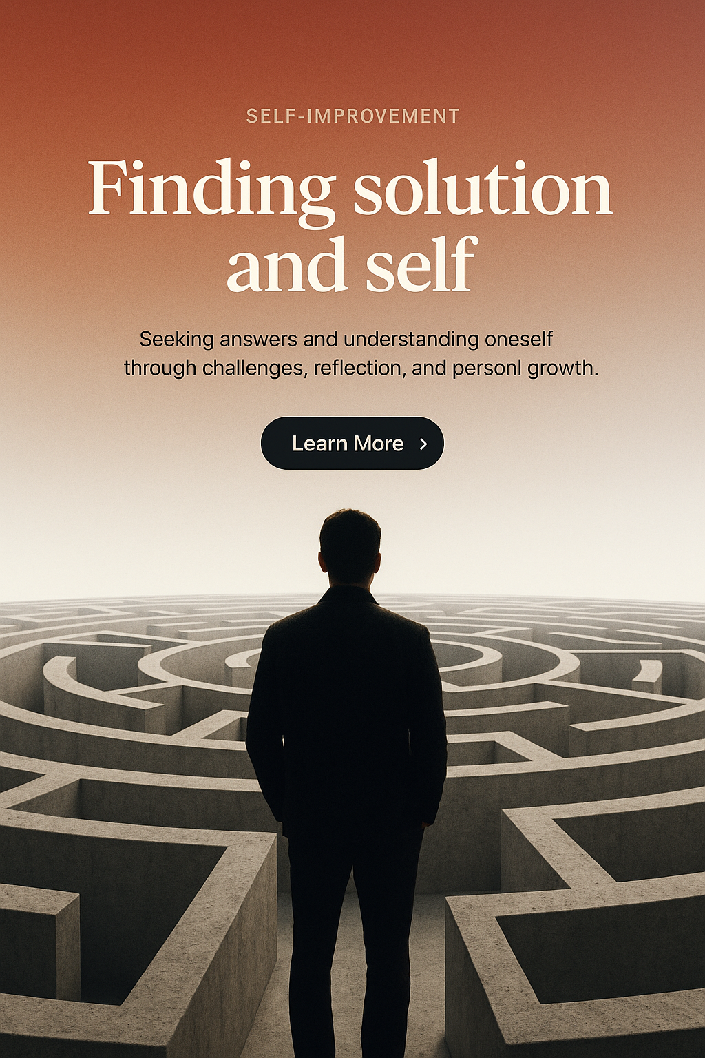 /Collection: /by davooda/Type: PNG/A silhouette of a man stands at the edge of a labyrinth, symbolizing the journey of self-improvement and personal growth. The gradient background transitions from dark to light, enhancing the theme of enlightenment.