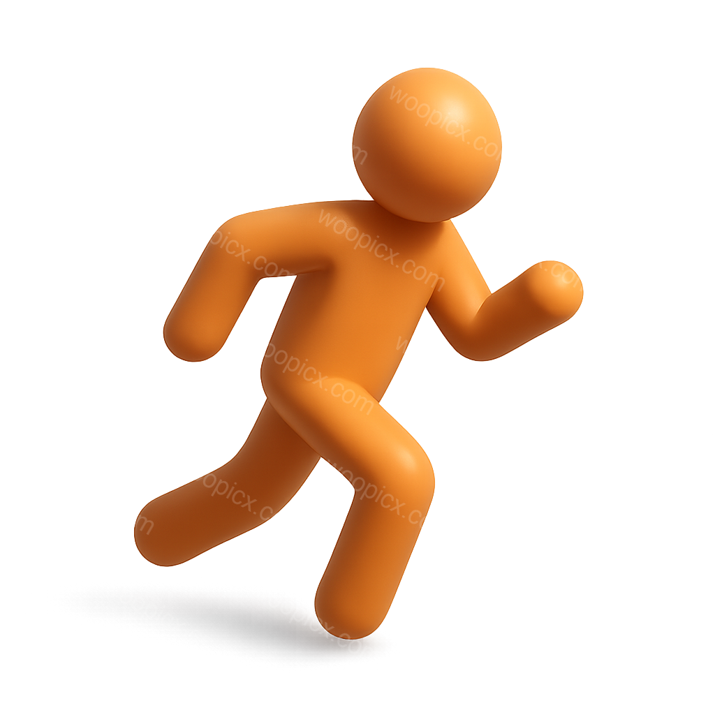 A stylized 3D figure depicted in motion, running to the right. The icon features a simplistic design with a vibrant orange color and a smooth, glossy finish, set against a subtle gradient background.