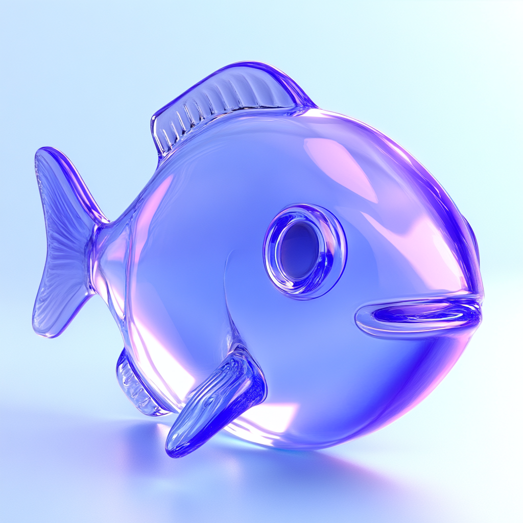 Stylized Glass Fish Sculpture with Soft Gradient Background