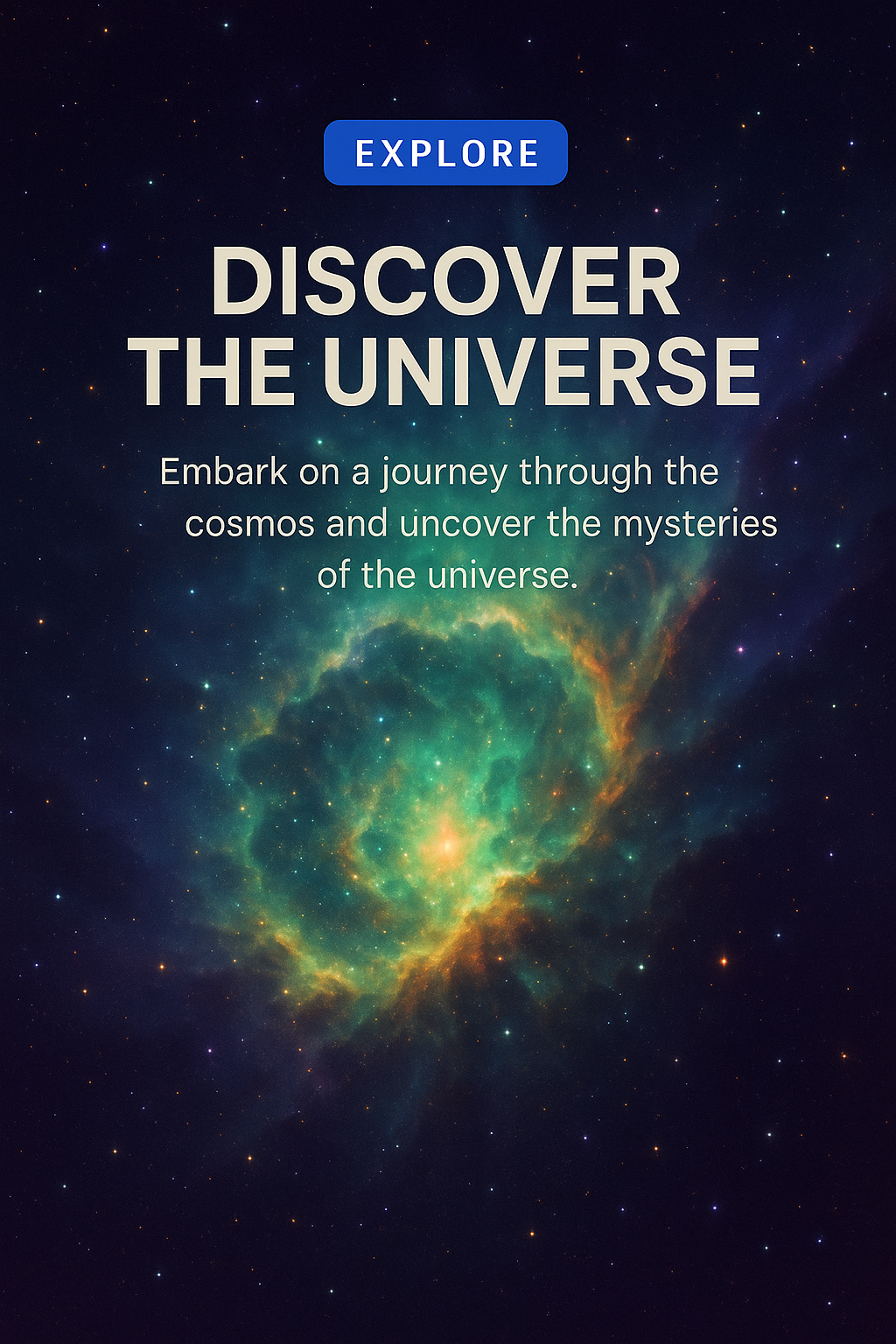 A visually striking graphic promoting an exploration of the universe, featuring vibrant cosmic imagery and engaging typography, ideal for educational or scientific outreach.