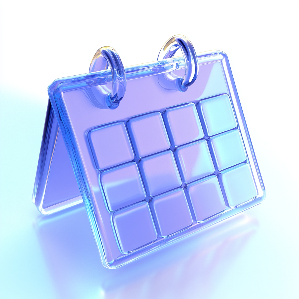A modern, stylized calendar graphic featuring a translucent design and geometric layout, ideal for digital applications and organizational themes.