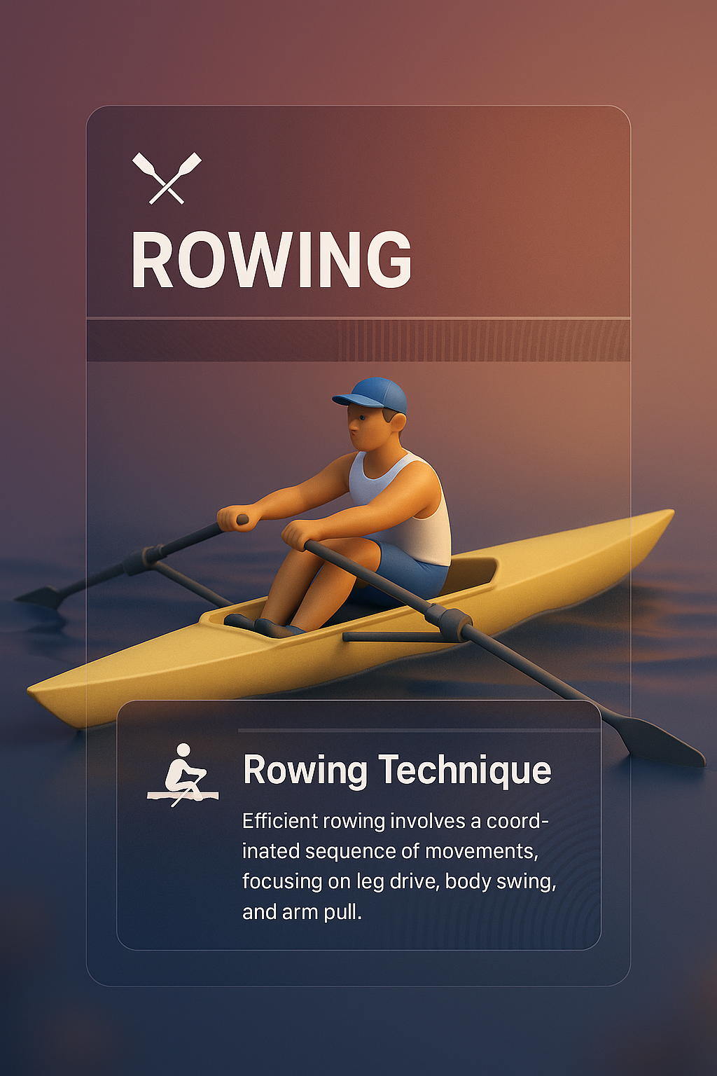 3D Illustration of Rowing Technique with Transparent Design Elements