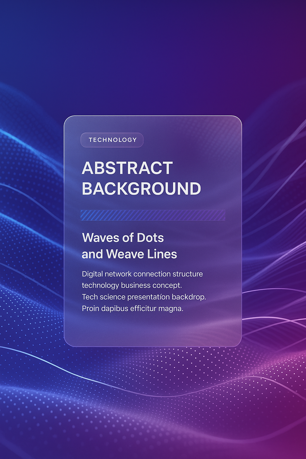 /Collection: /by davooda/Type: PNG/An abstract background featuring waves of dots and woven lines, ideal for technology presentations. The design incorporates a subtle gradient and a transparent overlay block for text.