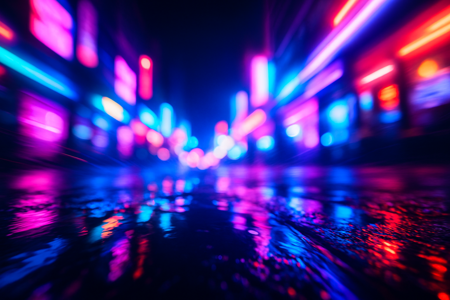 Vibrant Neon City Lights Reflecting on Wet Streets