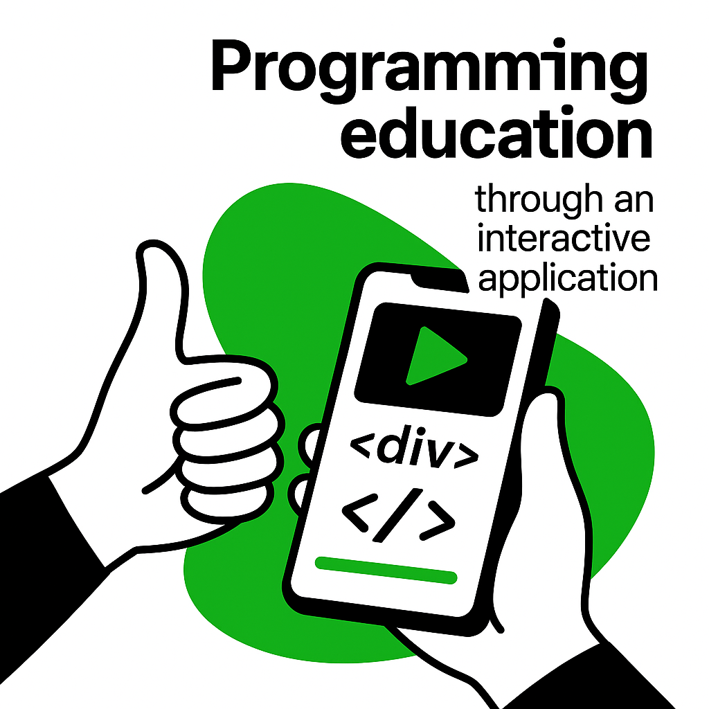 /Collection: /by davooda/Type: PNG/A digital illustration showcasing a hand holding a smartphone displaying coding elements, emphasizing programming education via an interactive application. Ideal for educational technology marketing.
