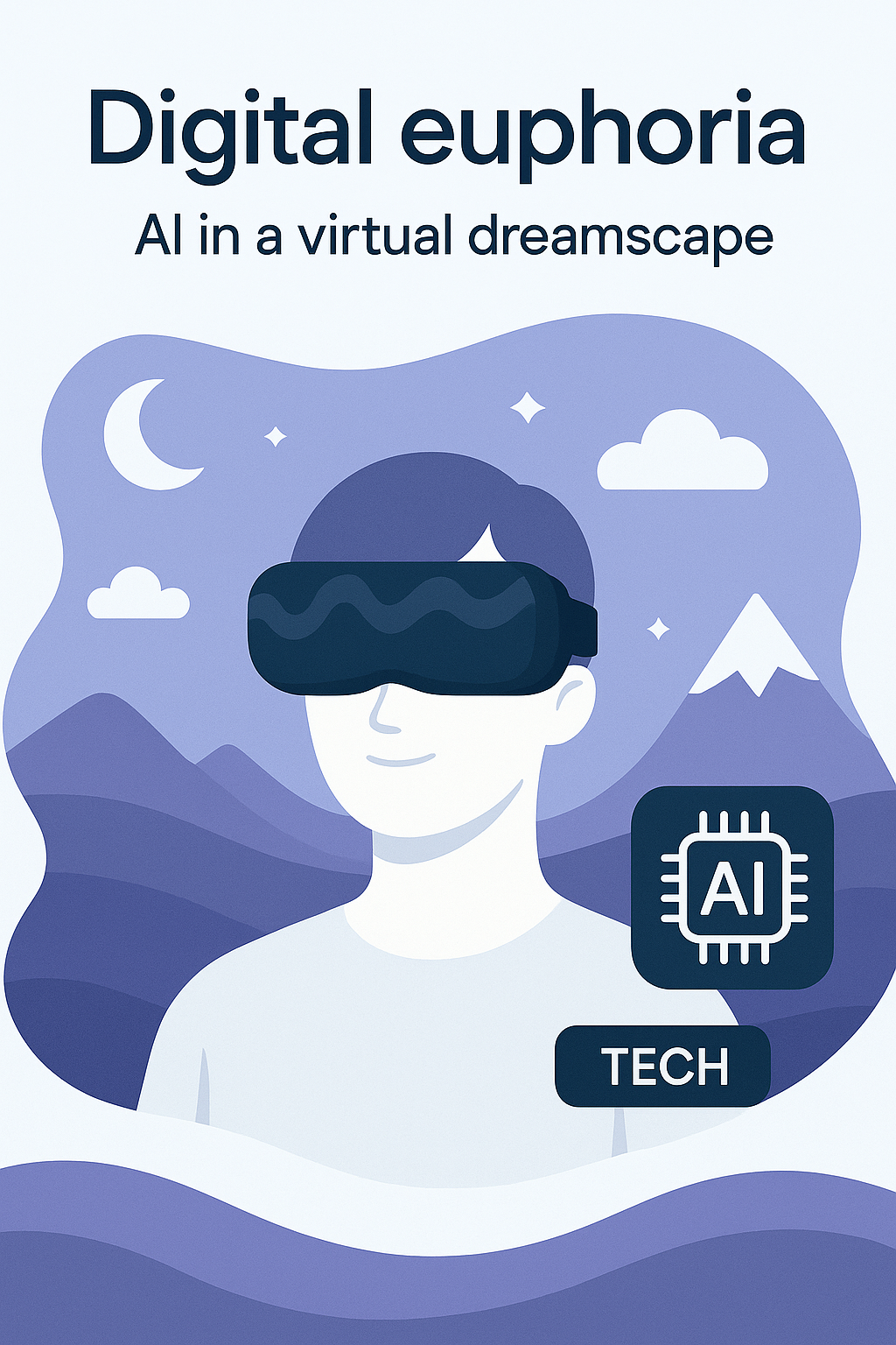 /Collection: /by davooda/Type: PNG/A modern graphic depicting a person wearing a VR headset against a dreamy landscape, showcasing technology and virtual experiences, ideal for tech-related content.