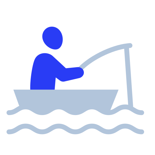 polish-blue simple icon: fishing, boat, water, angler, sport