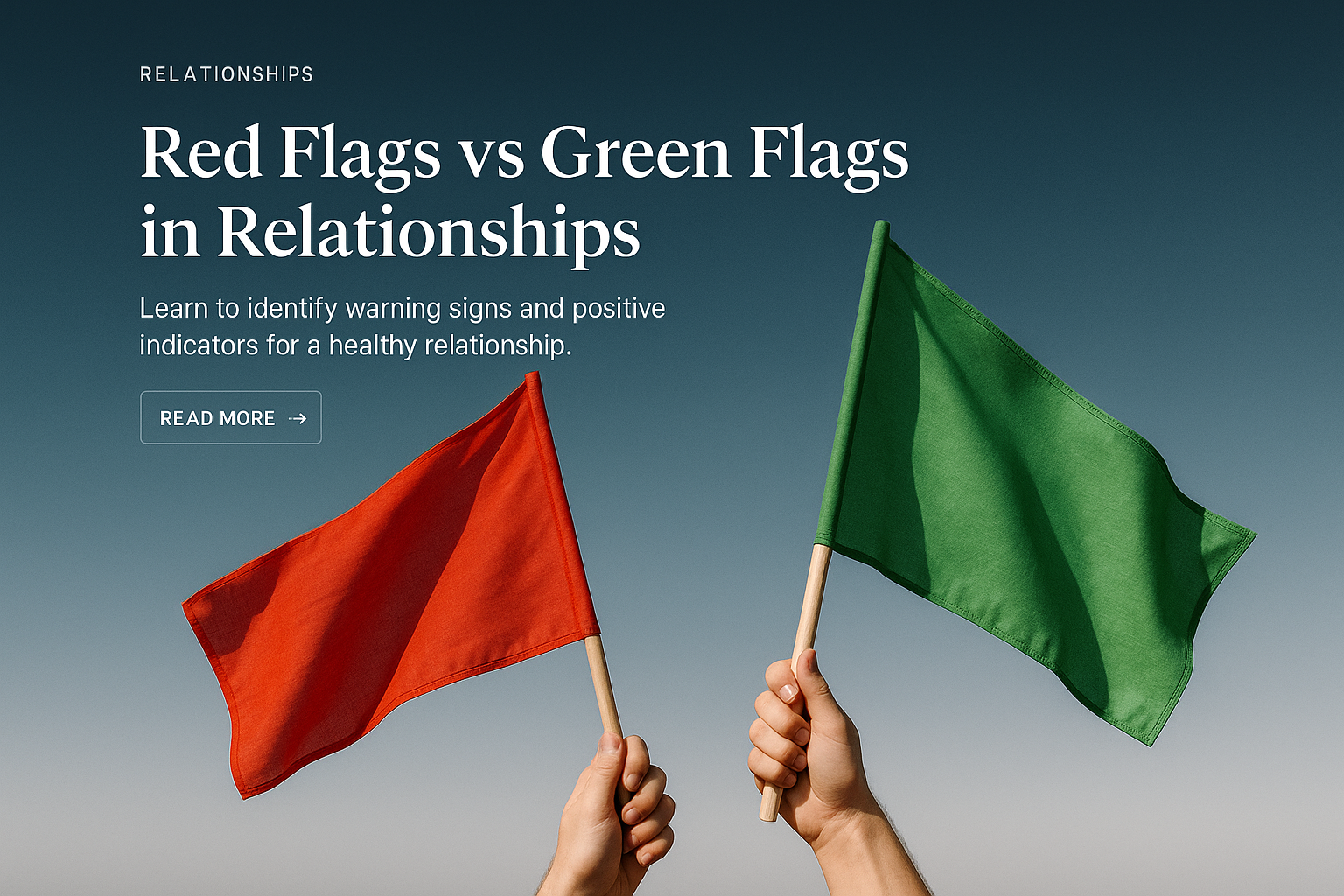 /Collection: /by davooda/Type: PNG/An engaging illustration showcasing a person holding red and green flags, symbolizing warning signs and positive indicators in relationships. The background features a gradient from dark blue to white, enhancing the visual appeal.
