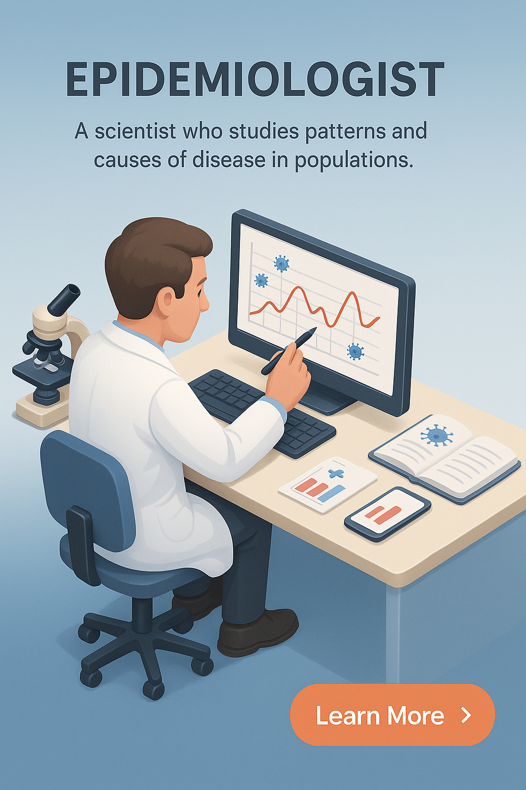 /Collection: /by davooda/Type: PNG/A 3D illustration depicting an epidemiologist analyzing data on a computer. The scene is zoomed out, featuring a gradient background and minimal details, enhancing the focus on the scientist.