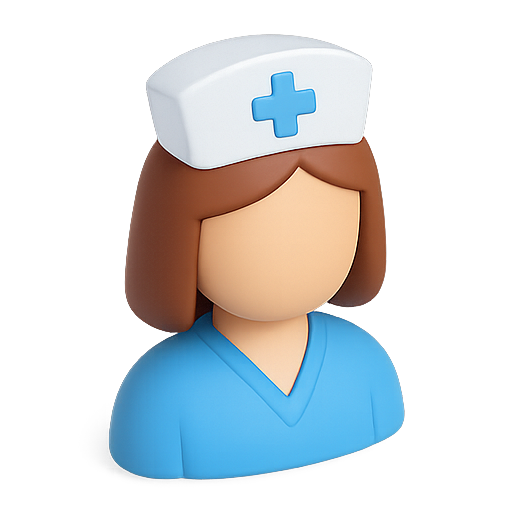 A stylized 3D emoji character depicting a nurse wearing a blue uniform and a white cap with a blue cross. Ideal for healthcare-related themes and digital communication.