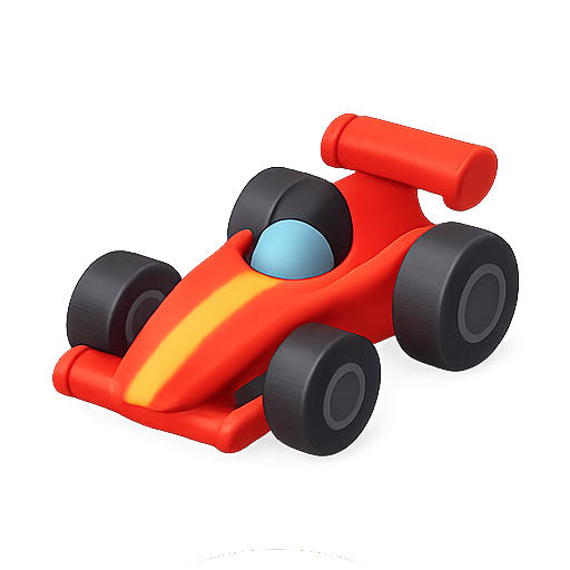 A playful, minimalist 3D rendering of a red racing car, featuring smooth curves and bold colors. Ideal for apps, games, or children's content.