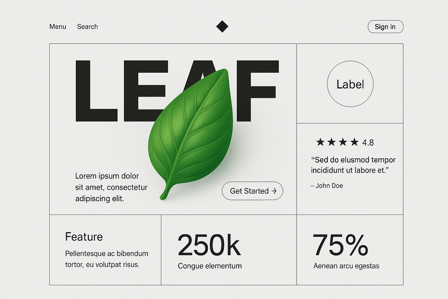 Minimalistic Landing Page Design Featuring Leaf Element