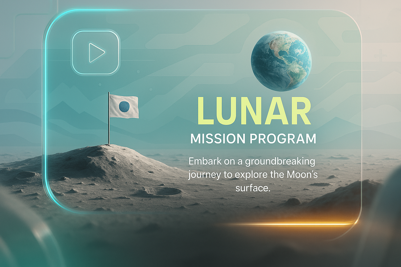 /Collection: /by davooda/Type: PNG/An engaging promotional graphic for a lunar mission program, showcasing a stylized lunar landscape with a flag and Earth in the background. Ideal for space exploration campaigns.