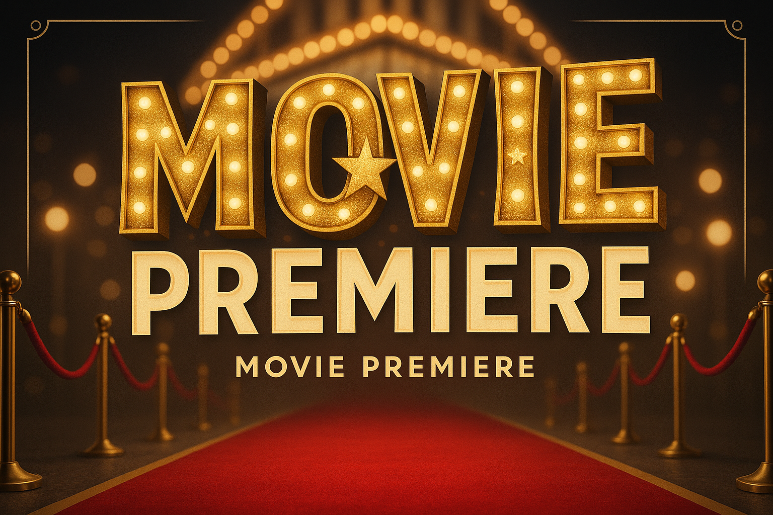 A visually striking promotional graphic for a movie premiere featuring illuminated lettering and a red carpet background, ideal for event marketing.