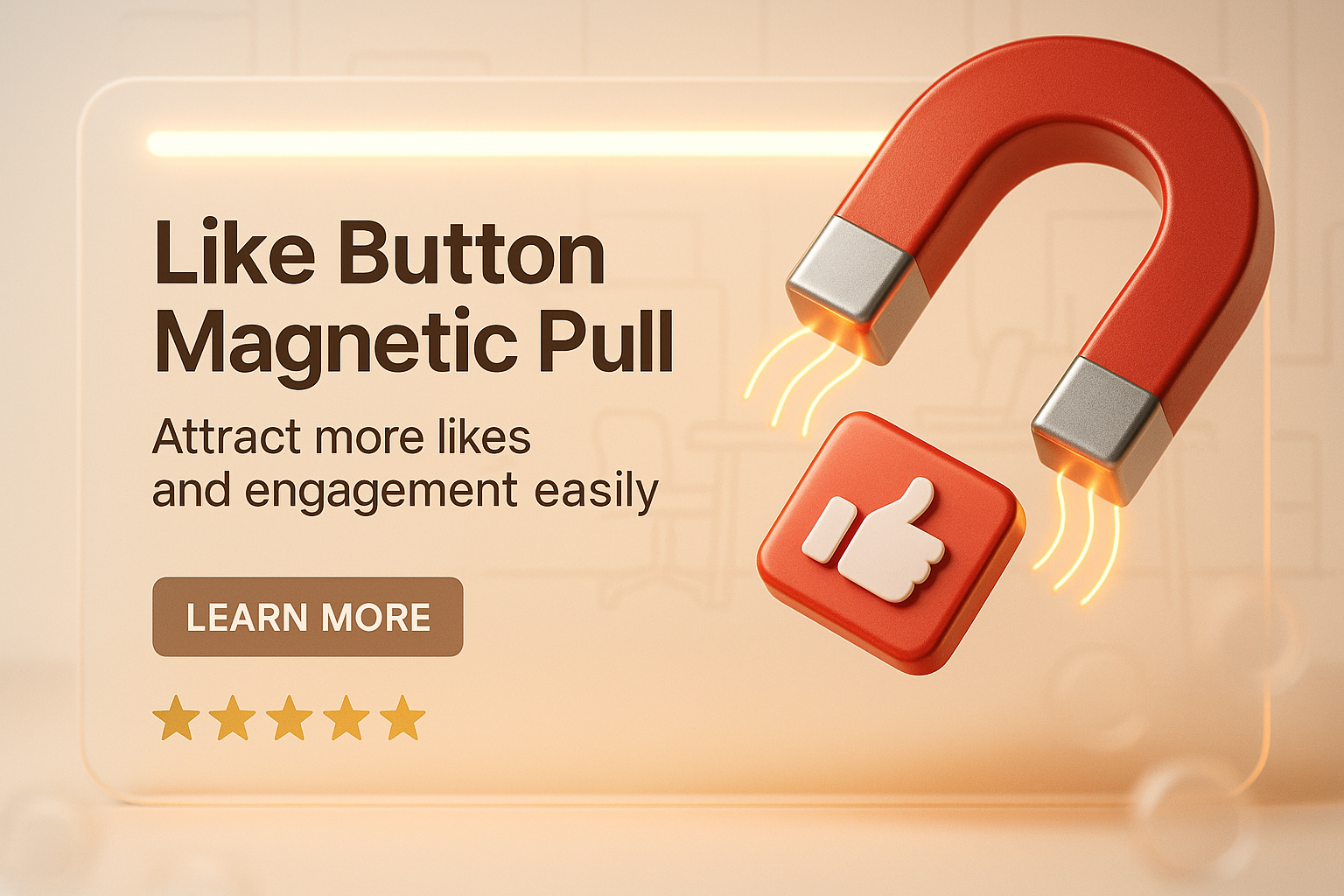 A modern digital graphic showcasing a magnet attracting a like button, designed for promoting social media engagement strategies. Ideal for online marketing.
