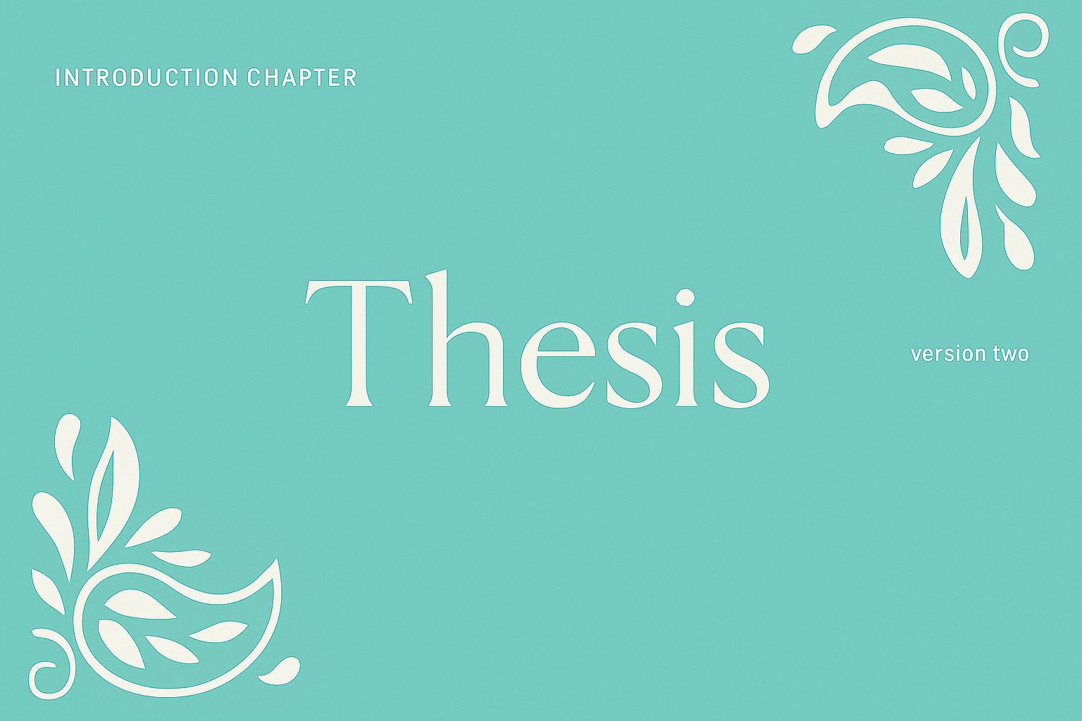 A visually appealing thesis introduction page featuring a turquoise background with intricate white patterns and stylish typography emphasizing the word 'Thesis'.