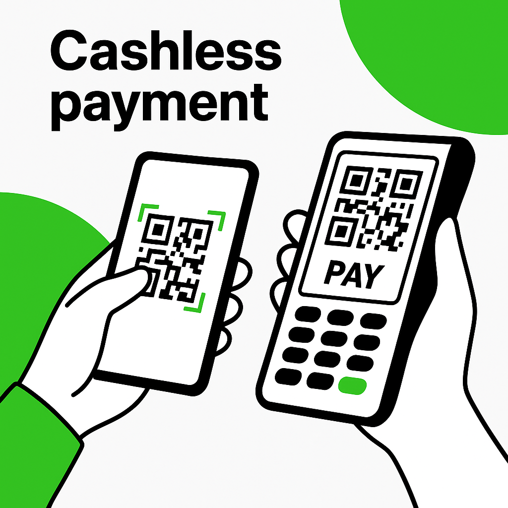 /Collection: /by davooda/Type: PNG/Simplistic graphic illustrating the concept of cashless payment through QR codes. Ideal for fintech marketing, digital payment services, and educational content.